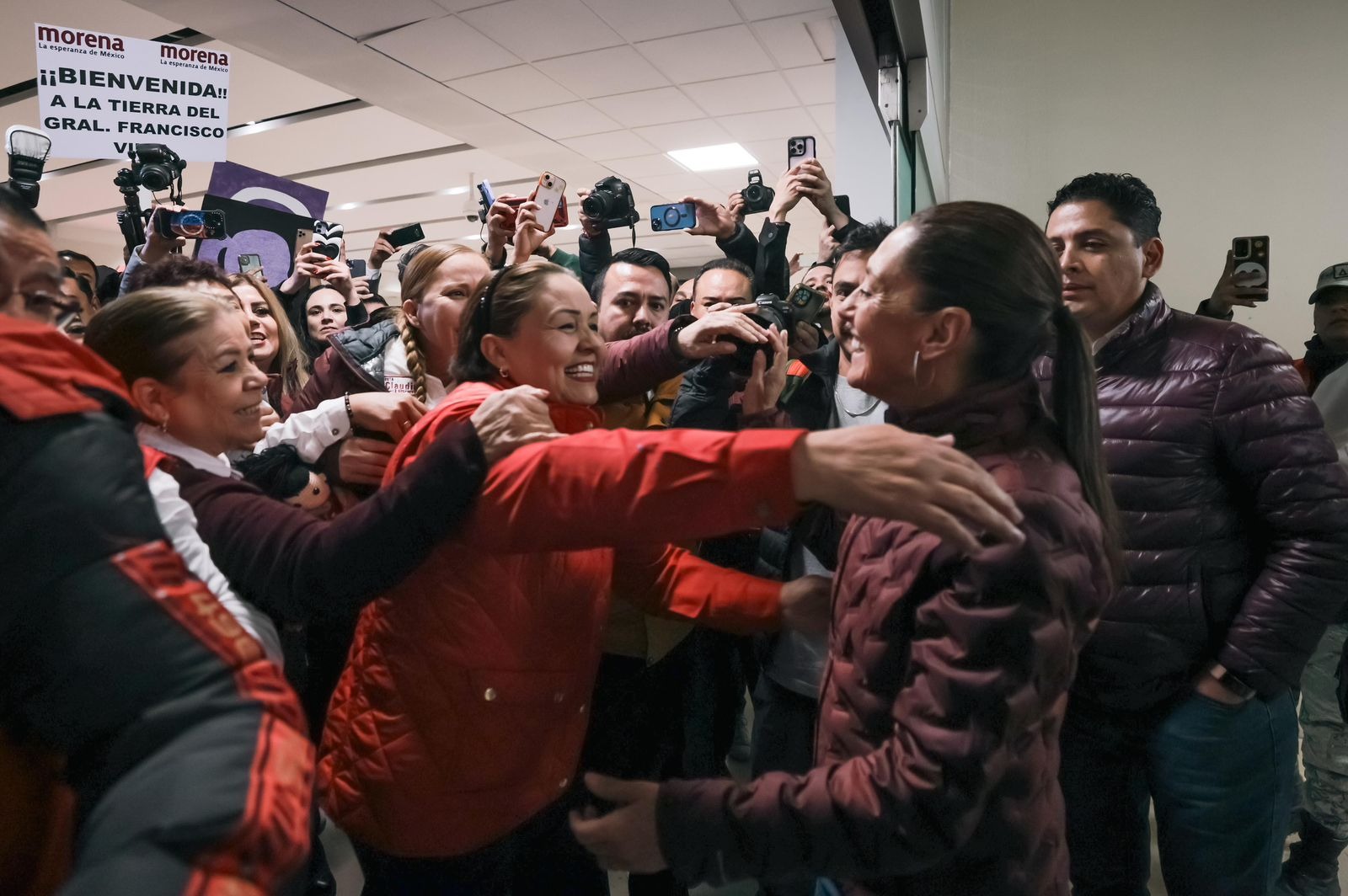 A su llegada, causando un gran revuelo, quienes se dieron cita en el Aeropuerto Internacional de la entidad, mostraron su apoyo con porras al grito de ¡Presidenta, ¡Es un honor estar con Claudia hoy! , así como con aplausos y cárteles en los que se leían mensajes como ’’Bienvenida a la tierra del general Francisco Villa’’.
