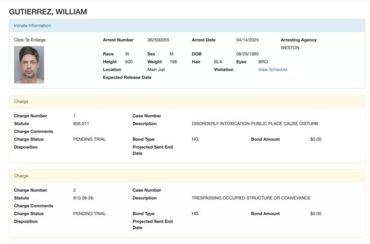 Según informó el periodista Alex Rodríguez, el actor tiene además otro cargo por “invasión de estructura o transporte ocupado”, basándose en la información del documento expedido por la oficina del Sheriff difundida en redes sociales.