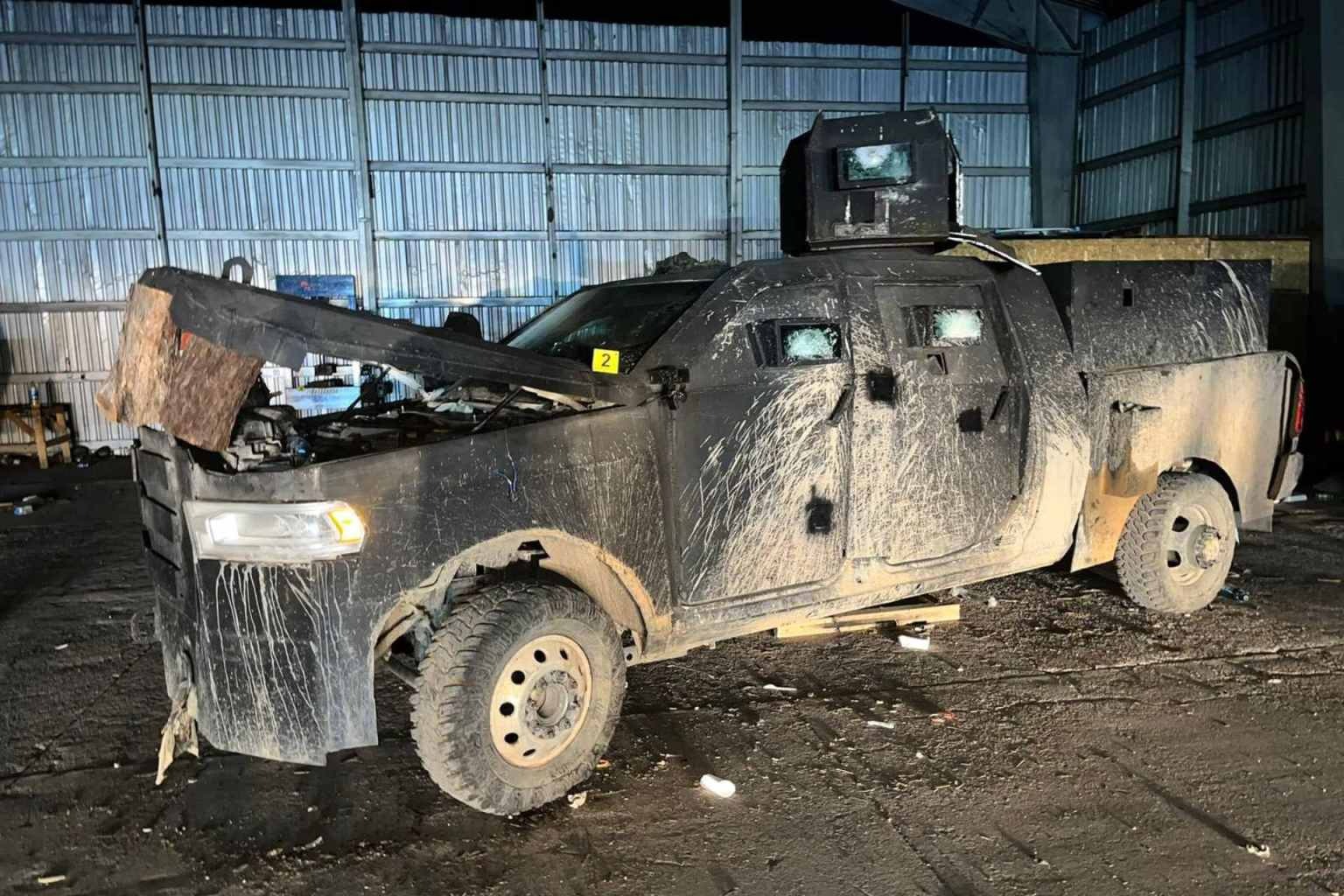 En el interior de la bodega se encontró un vehículo de la marca RAM blindado tipo “monstruo”, con torreta para montar una ametralladora, una camioneta tipo pick up de la marca Hummer H2, así como un vehículo Chevrolet Silverado.