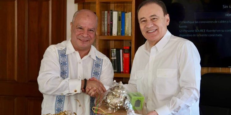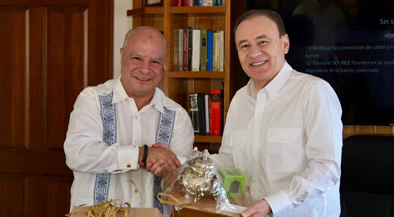 Hermosillo, Sonora; 6 de mayo de 2024.- El gobernador Alfonso Durazo Montaño atendió una reunión de trabajo con Abdelfattah Lebbar, embajador de Marruecos en México, en seguimiento a la visita del cuerpo diplomático acreditado en México que se realizó en 2023 en Puerto Peñasco, donde se abordó la acciones que se llevan en el Plan Sonora.