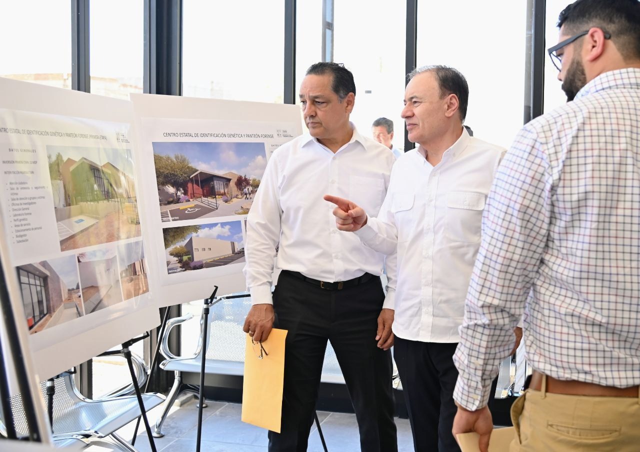 El mandatario estatal, fue acompañado por Javier Ignacio Díaz Ballesteros, titular de la Comisión de Búsqueda de Personas para el Estado de Sonora, para continuar con la obra de este proyecto, el cual inició en 2023 y que en su primera etapa se construyeron las áreas de atención ciudadana, salas de entrevista y seguimiento a víctimas, las salas de atención a grupos y víctimas, oficinas de investigadores, dirección general, laboratorio forense, perfil genético, áreas de servicio, estacionamiento de personal, biodigestor y subestación.