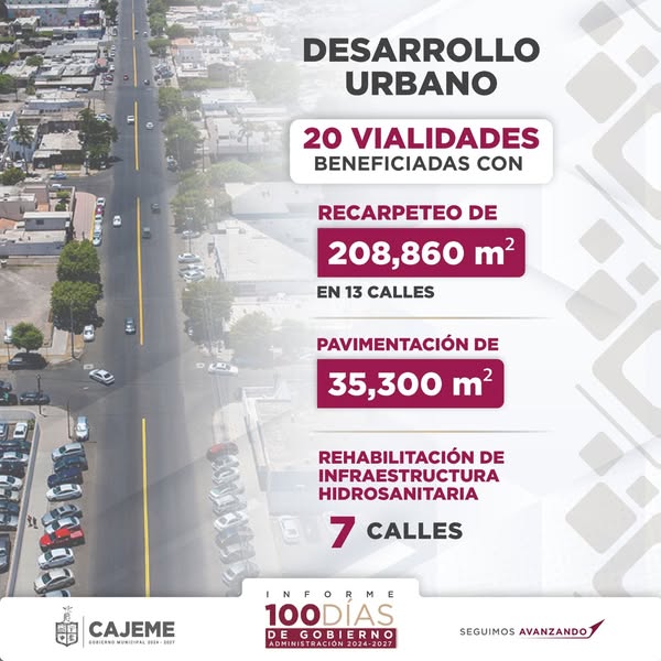 Más movilidad, seguridad y calidad de vida para la población. ¡Seguimos construyendo un Cajeme más moderno y funcional!
