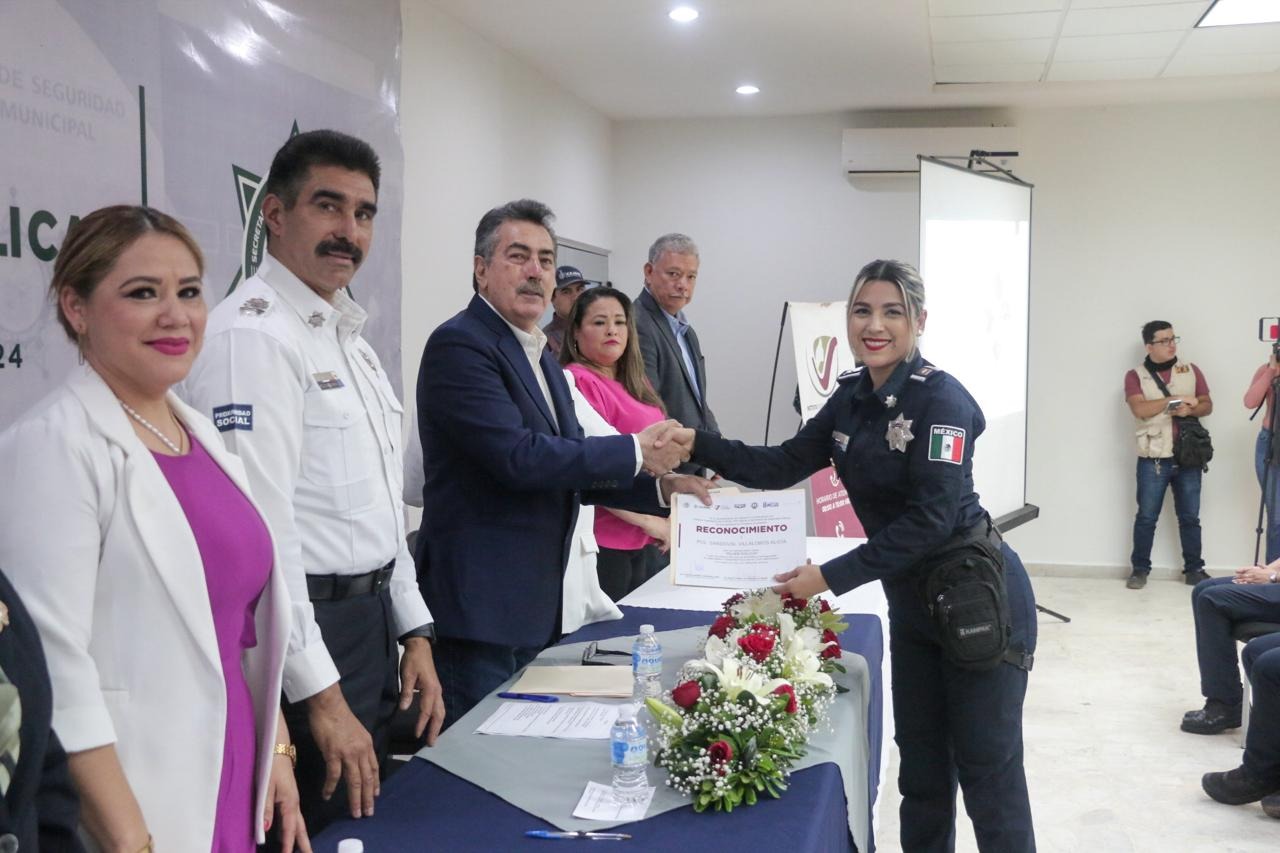 Estuvieron presentes Josefina Leyva González, Síndico Municipal; Jorge Alberto Ponce Salazar, Oficial Mayor del Ayuntamiento; Enriqueta Domínguez Medina, Regidora y Presidenta de la Comisión de Seguridad; Dominga Bravo Peña, Directora de Programas Preventivos de la SSPM; Mirna Lorena Mora, Presidenta de la Comisión de la Mujer; Miriam Rodríguez Tapia, Directora de la Unidad Especializada para Menores; José Luis López Delgado, Director de Capacitación y Academia de la Policía Municipal; entre otros.