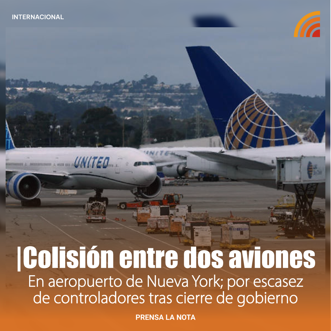 Washington.- Dos aviones comerciales chocaron en pista sin que se produjeran heridos en el aeropuerto de LaGuardia, Nueva York, el cual se vio afectado durante toda la jornada por la escasez de controladores aéreos debido al cierre del gobierno federal.