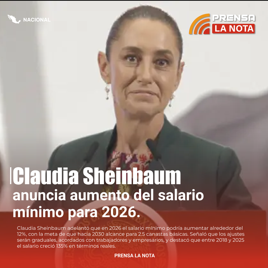 La presidenta Claudia Sheinbaum adelantó que el incremento al salario mínimo para 2026 podría situarse alrededor del 12 por ciento, similar al aplicado este año, con el objetivo de fortalecer el poder adquisitivo de los trabajadores.