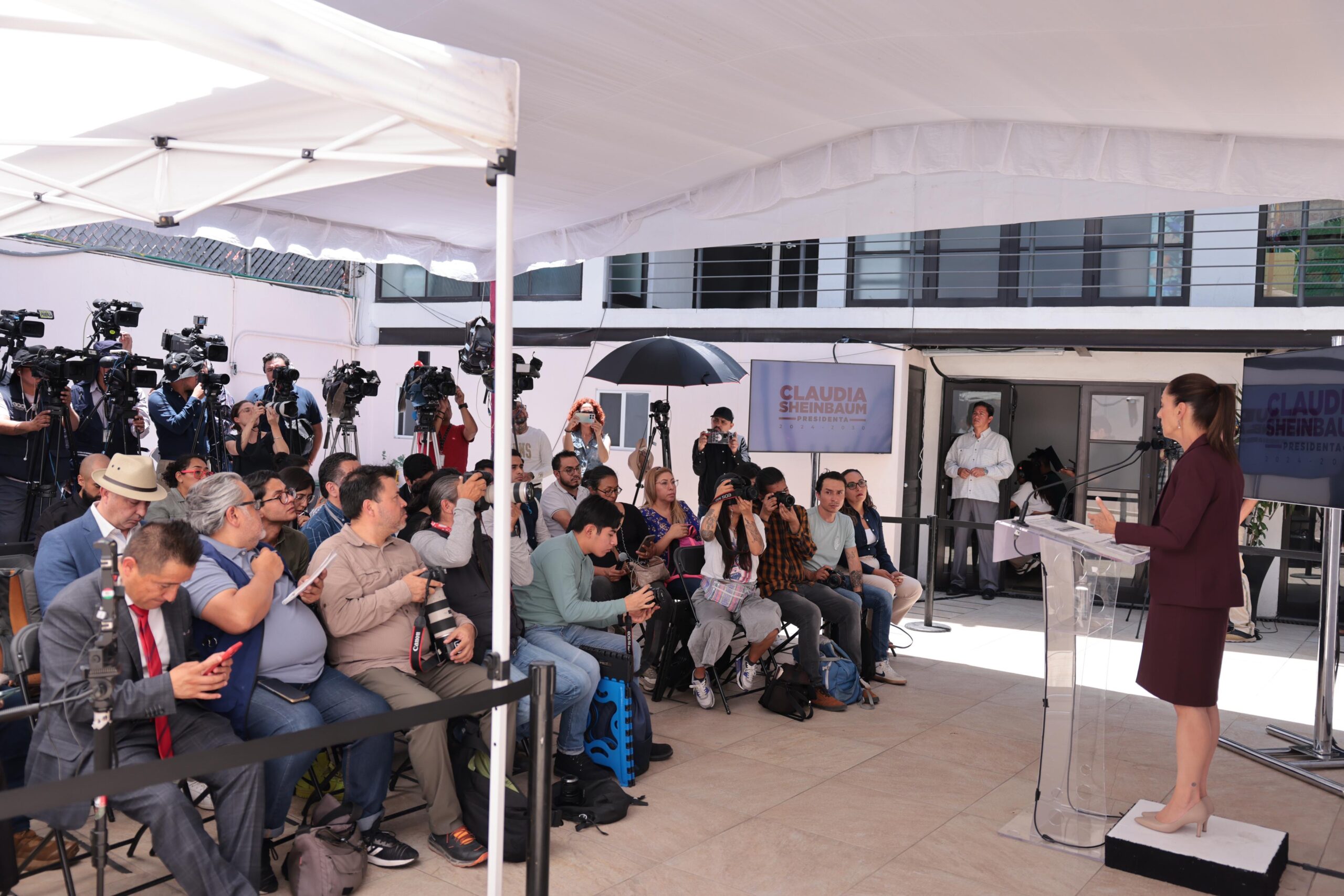 En atención a las preguntas de los medios de comunicación, la candidata electa a la Presidencia de la República refrendó su postura a favor de una Reforma Judicial que someta a voto popular la elección de jueces, magistrados y ministros, por lo que, dijo, dichas iniciativas tienen que ser conocidas por todo México y discutidas ampliamente en un Parlamento Abierto.