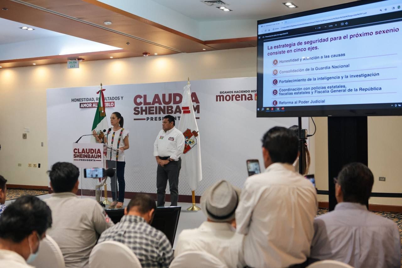 En conferencia de prensa, Claudia Sheinbaum estuvo acompañada de Javier May Rodríguez, candidato a la gubernatura de Tabasco, quien destacó que la visita de la abanderada de la colación ‘’Sigamos Haciendo Historia’’ a la Presidencia de la República como un hecho histórico que marca el avance de la 4T en Tabasco.