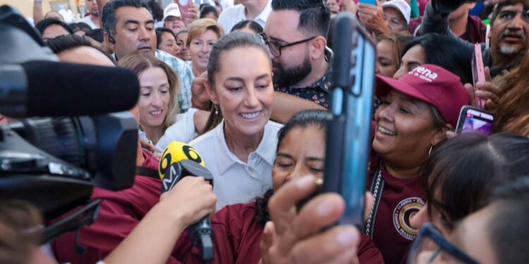 Entre porras en las que se escuchaban a una sola voz ¡Presidenta! y con mucha alegría, quienes se dieron cita en el aeródromo de la entidad, aprovecharon el momento para capturar la ocasión con fotografías, así como para mostrar su cariño entre abrazos.