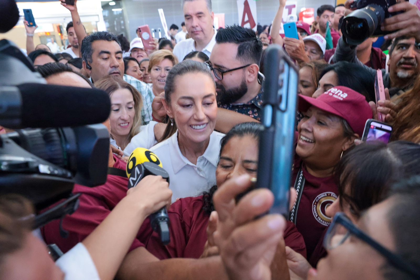 Monterrey, Nuevo León a 14 de junio de 2024.- Con la finalidad de emprender su camino rumbo al estado de Coahuila, Claudia Sheinbaum Pardo, candidata electa a la Presidencia de la República, llegó al aeropuerto de Monterrey, Nuevo León, donde fue recibida por personas de todas las edades al grito de “¡Claudia, te queremos!”