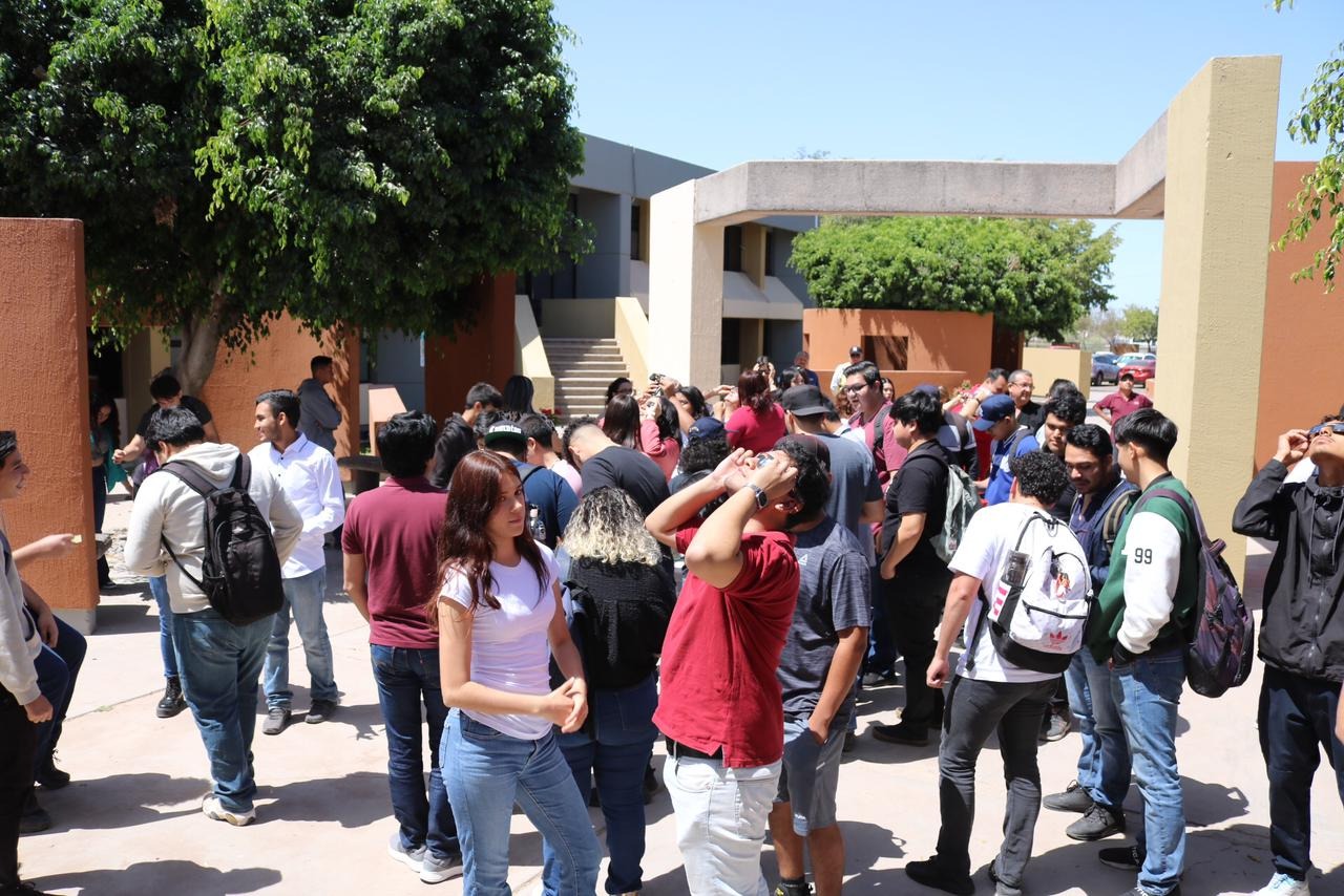 Cd. Obregón, Son., 08 de Abril de 2024.- Para explicar la importancia de los fenómenos astronómicos, el Instituto Tecnológico Superior de Cajeme (ITESCA), a través de la materia paraescolar de Astronomía y el Club de Astronomía, a cargo del Mtro. Carlos Vega Amaya, montó una estación para observar el Eclipse Solar Total 2024 desde la Plaza del Estudiante, para lo cual, se distribuyeron lentes especiales.