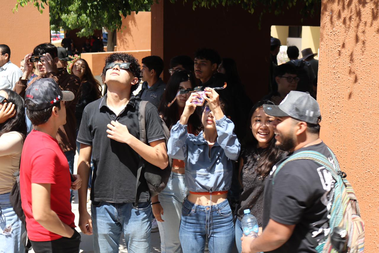 Cd. Obregón, Son., 08 de Abril de 2024.- Para explicar la importancia de los fenómenos astronómicos, el Instituto Tecnológico Superior de Cajeme (ITESCA), a través de la materia paraescolar de Astronomía y el Club de Astronomía, a cargo del Mtro. Carlos Vega Amaya, montó una estación para observar el Eclipse Solar Total 2024 desde la Plaza del Estudiante, para lo cual, se distribuyeron lentes especiales.