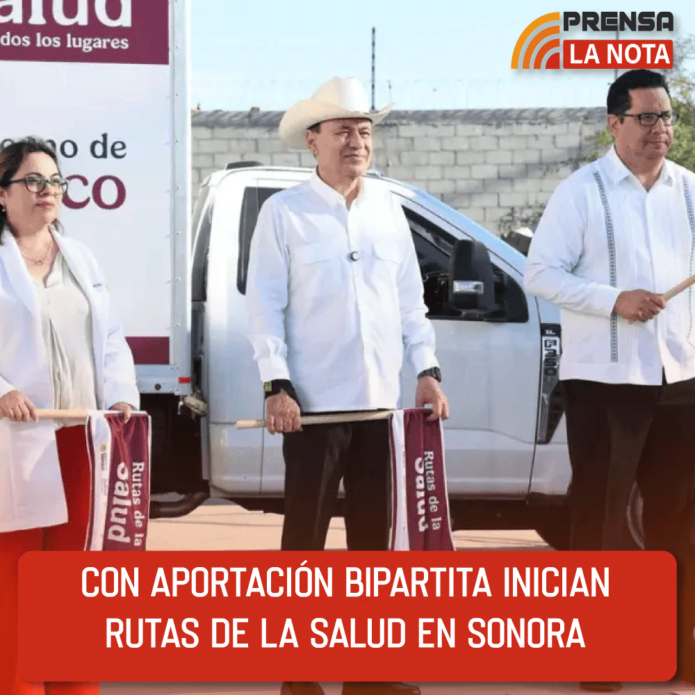 El jefe del ejecutivo estatal acompañado de Gabriela del Carmen Nucamendi Cervantes, titular de la Coordinación Estatal de los Servicios de Salud de IMSS-Bienestar Sonora, y de José Luis Alomía Zegarra, secretario de Salud Pública del estado, dio el banderazo de arranque de las ‘Rutas de la Salud’ en Sonora.