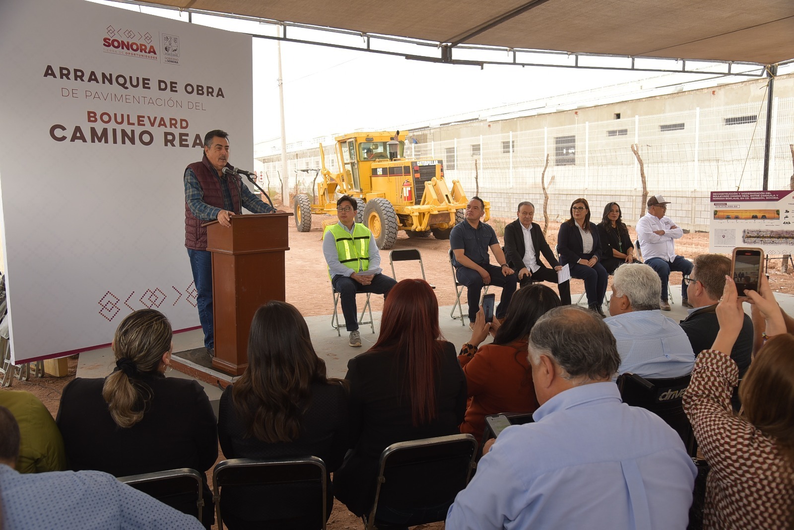 Con el objetivo de mejorar la superficie de rodamiento y con ello contar con un eficiente flujo vehicular, disminuir los riesgos de accidentes viales, reducción en tiempos de traslado y de contaminación por polvos, previo a la entrada en operaciones de la empresa coreana Kyungshin, el Presidente Municipal, Javier Lamarque Cano y el Gobernador Alfonso Durazo Montaño, dieron el banderazo de inicio de obra de pavimentación y modernización del bulevar Camino Real, entre Coahuila y Norman E. Borlaug, en la que se invierten 19 millones 608 mil 988 pesos, en beneficio de más de 15 mil habitantes del sector sur.