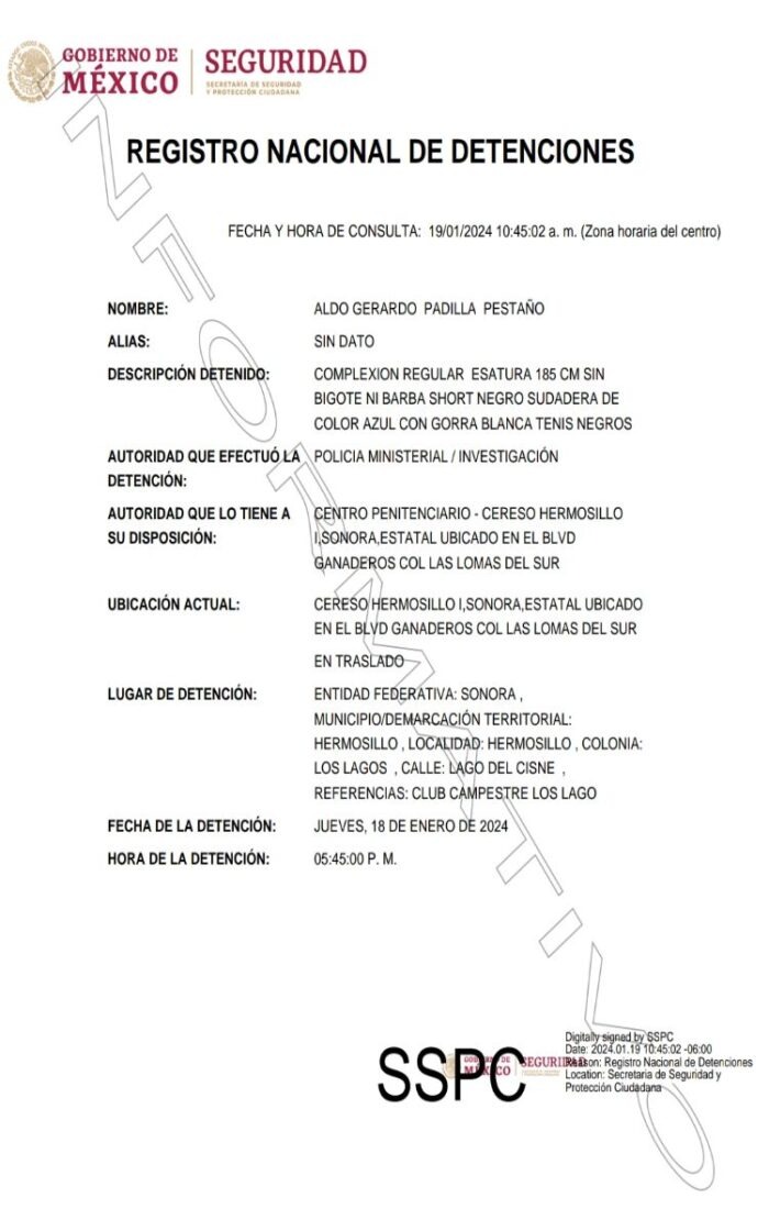 La Fiscalía General de Justicia del Estado de Sonora informó que arrestó a Aldo Gerardo Padilla Pestaño—ex presidente magistrado del Tribunal y de Justicia Administrativa del Estado— por presunto enriquecimiento ilícito.