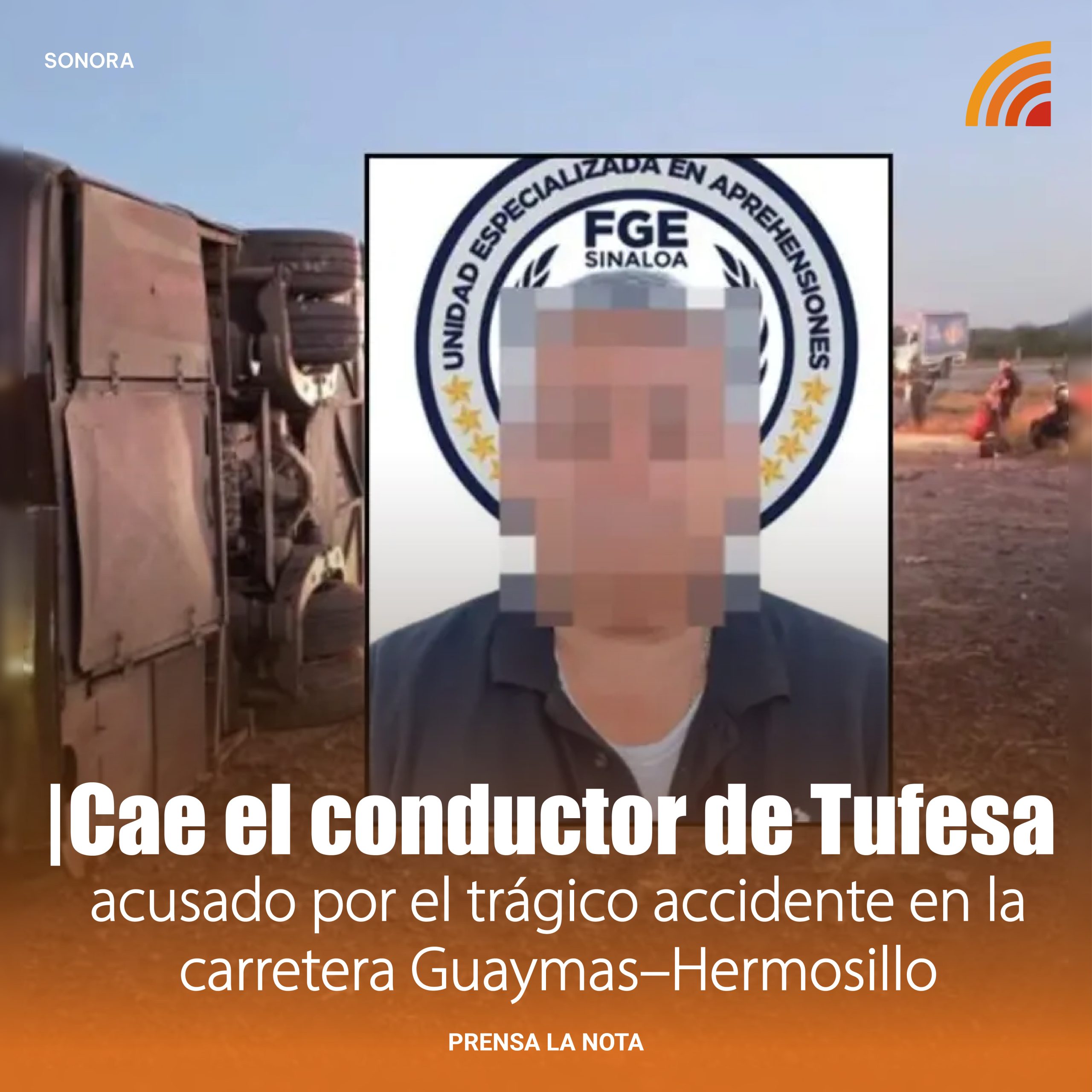 La Fiscalía General de Justicia del Estado de Sinaloa confirmó la detención de Joel “N”, de 51 años, señalado como el conductor responsable del fatal accidente del autobús de la empresa Tufesa ocurrido el pasado 17 de octubre en la carretera México 15, tramo Guaymas–Hermosillo, que dejó siete personas fallecidas y 24 lesionadas.
