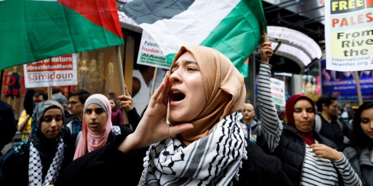 Poco antes, en Times Square se llevó a cabo una manifestación que convocó a un gran número de personas proPalestina que exigían el cese el fuego en la Franja de Gaza.
