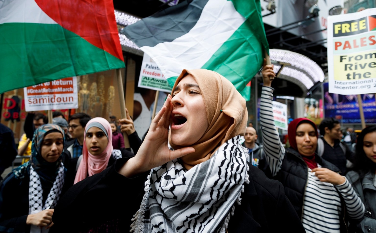 Poco antes, en Times Square se llevó a cabo una manifestación que convocó a un gran número de personas proPalestina que exigían el cese el fuego en la Franja de Gaza.