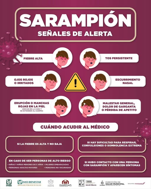 ¡Atención, Cajeme! Identifica a tiempo los síntomas del sarampión.