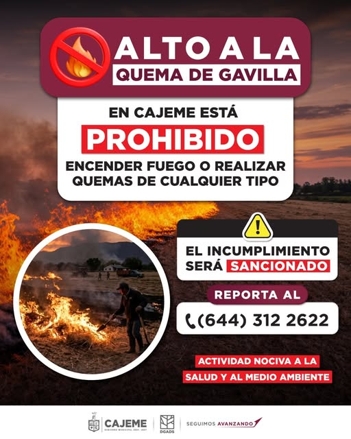 Cuidar nuestro aire es responsabilidad de todas y todos . Reporta cualquier quema al (644) 312 2622