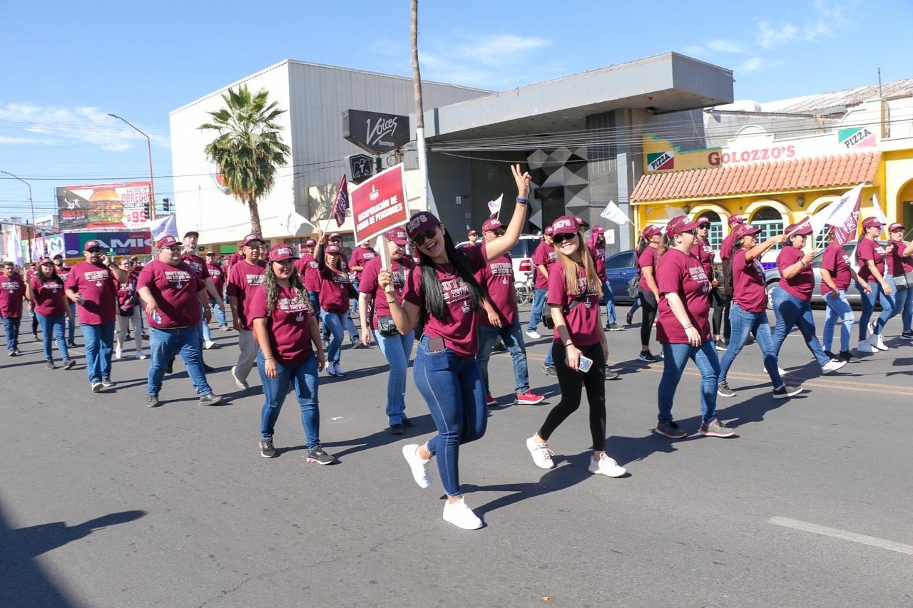 Desfilan más de 10 mil trabajadoras y trabajadores de Cajeme