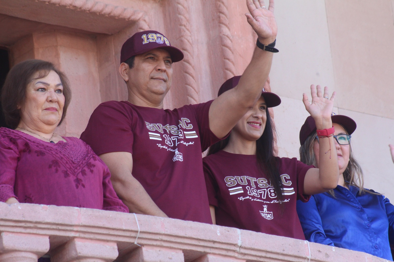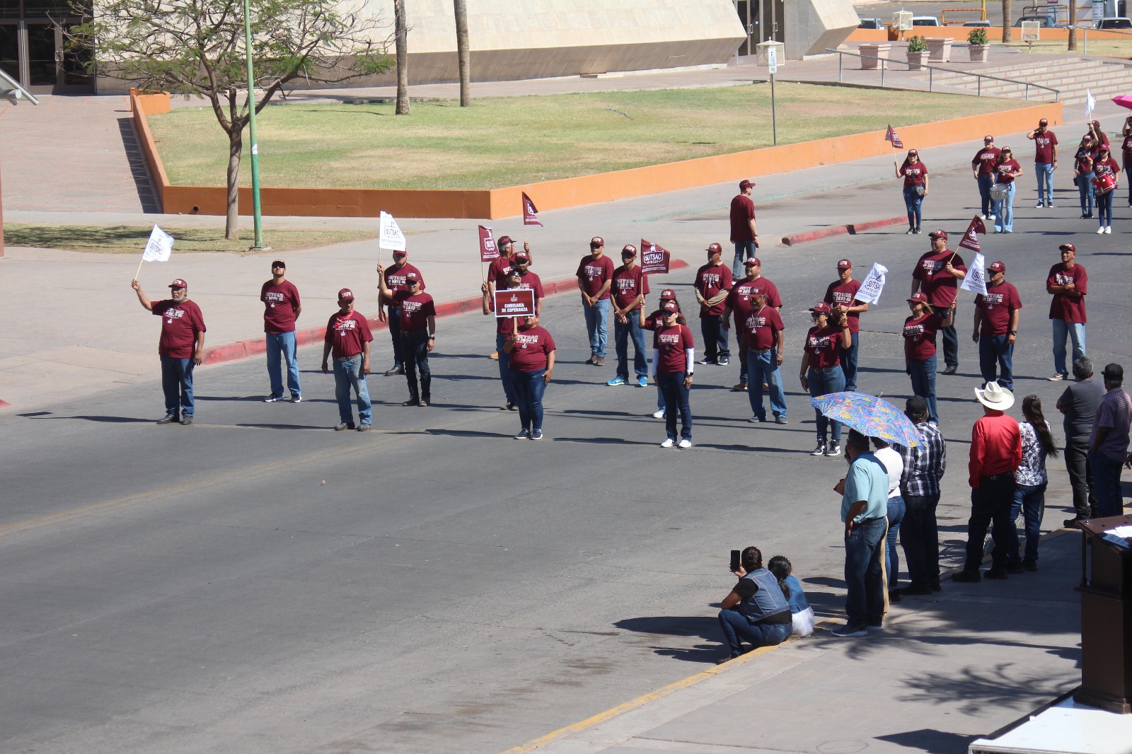 El Presidente Municipal Octavio César Quintero Valenzuela encabezó a las 25 organizaciones sindicales y sus diferentes contingentes, así como a más de 10 mil trabajadoras y trabajadores que con motivo del Día Internacional del Trabajo desfilaron por calles céntricas de la ciudad.