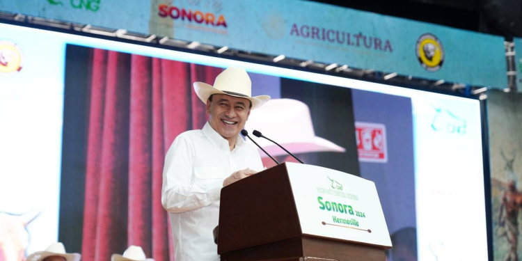Hermosillo, Sonora; 13 de mayo de 2024.- De la exportación nacional ganadera, Sonora aporta el 30%, con lo cual se coloca en el segundo puesto en el país, así lo dio a conocer el gobernador Alfonso Durazo Montaño al participar en la inauguración de la 88 edición de la Convención Nacional Ganadera.
