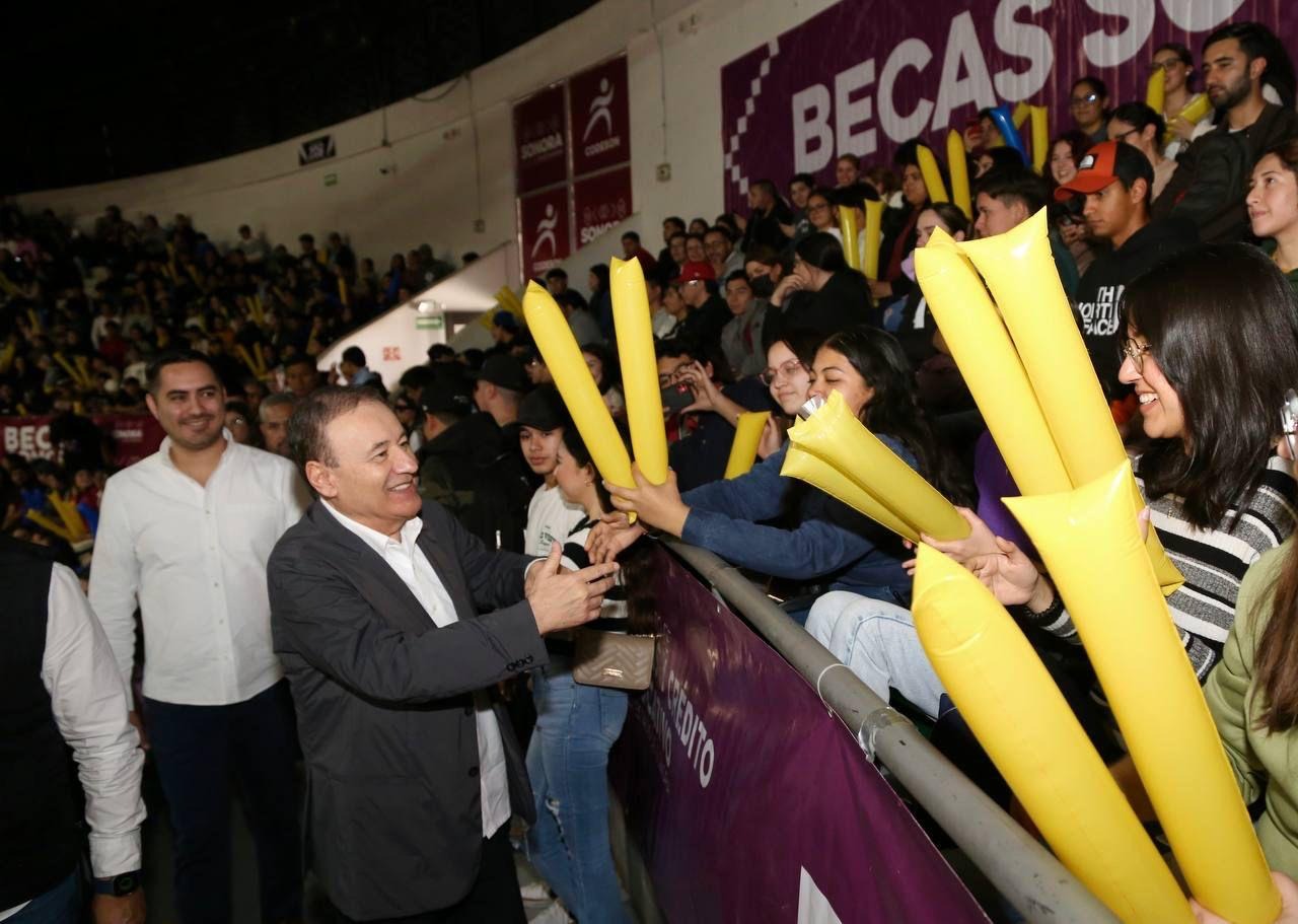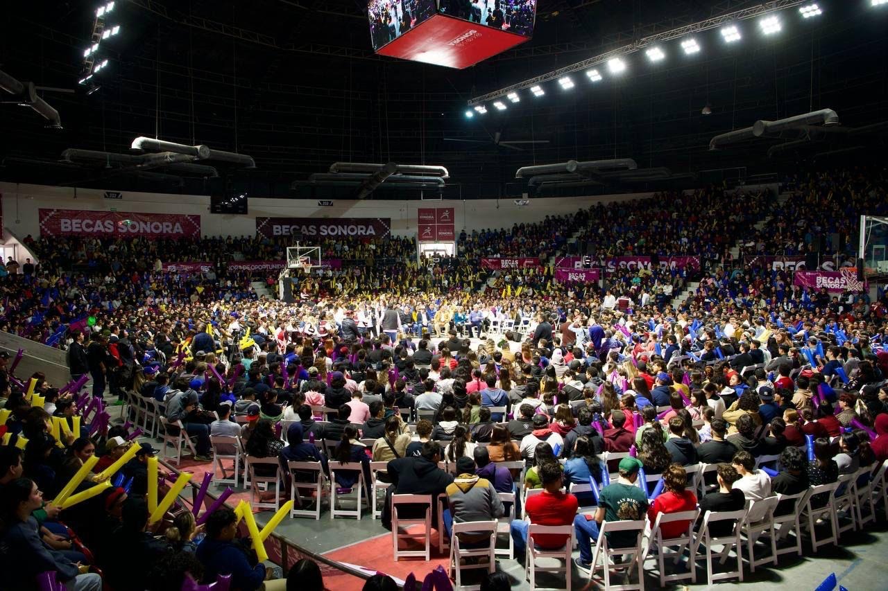 Ante miles de jóvenes, el mandatario estatal, destacó que, si bien todos los programas del Gobierno de Sonora son nobles y apoyan a las y los sonorenses, sin duda alguna, el de becas es el de los más significativos, pues contribuye a que las y los estudiantes sonorenses continúen con su formación universitaria.