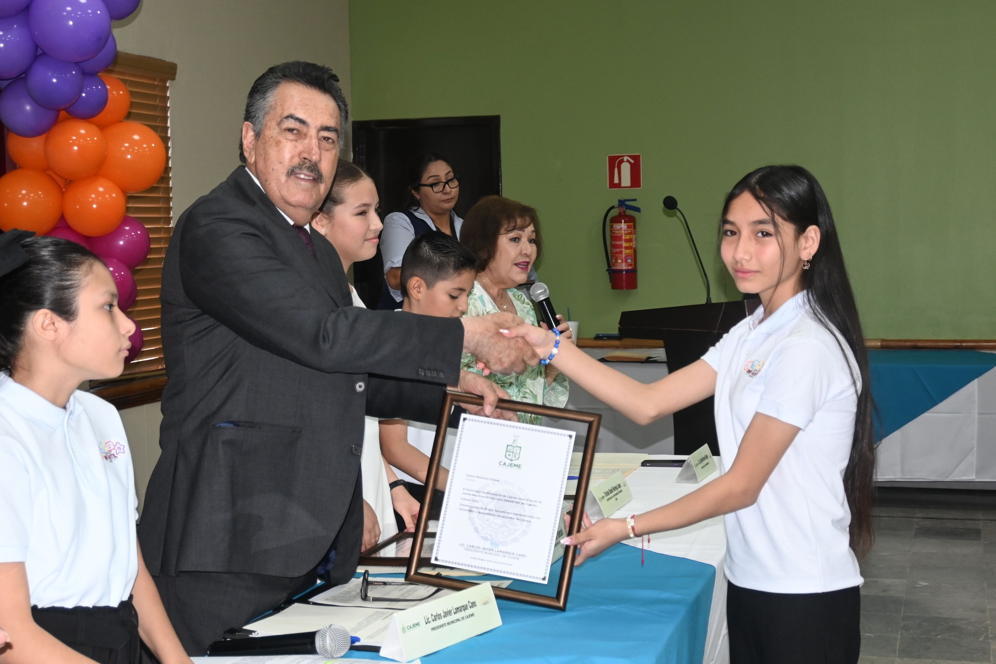 En sesión de cabildo recibió de mano del presidente municipal Javier Lamarque el nombramiento, como reconocimiento a su desempeño académico en la escuela “Nissan” de la colonia Las Misiones.
