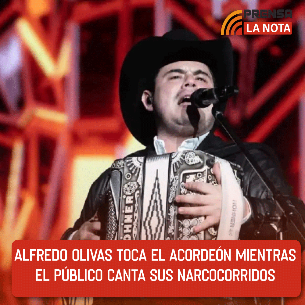 A diferencia de otros exponentes del regional mexicano como Grupo Firme o El Recodo, quienes han optado por eliminar los corridos de sus conciertos, Alfredo Olivas recurrió a una táctica poco convencional: interpretó con su acordeón los instrumentales de canciones como “El malo de Culiacán”, “Corrido del infiernito” y “El paciente”, pero dejó que fuera el público quien cantara las letras.