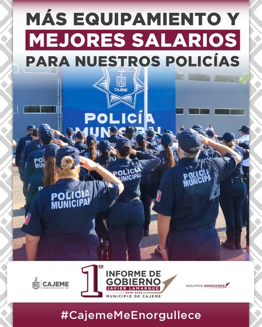 ¡Reconocemos su gran labor! Invertimos en más equipamiento y mejores salarios para nuestros policías, porque un elemento mejor preparado y motivado es clave para la seguridad de todas las familias cajemenses.