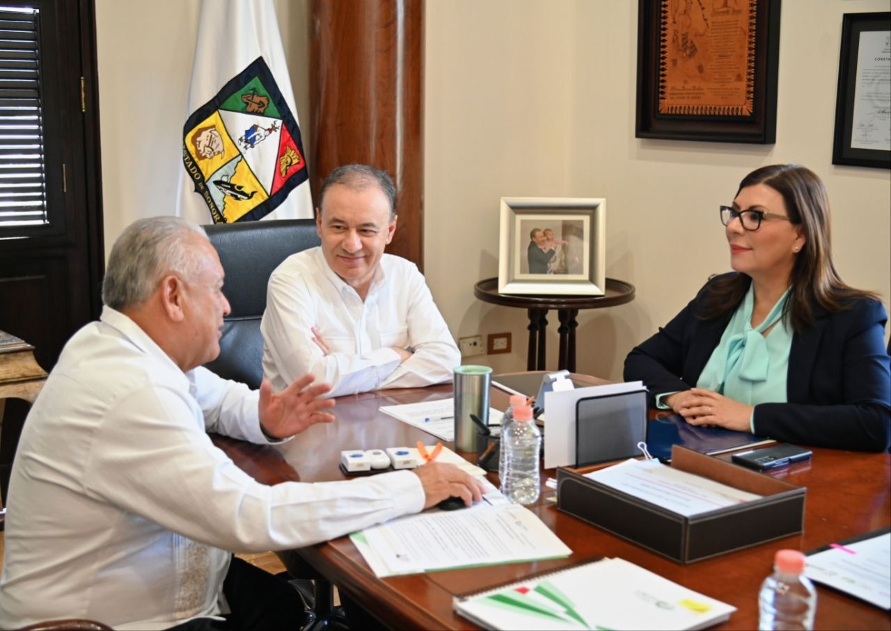 Hermosillo, Sonora; 20 de abril de 2024.- El gobernador Alfonso Durazo Montaño celebró la firma de convenio con el titular del Instituto Mexicano de la Propiedad Industrial (IMPI), José Sánchez Pérez, cuyo propósito es generar actividades en conjunto, relacionadas con la promoción de la propiedad industrial, con énfasis en los grupos menos favorecidos en el país, con un enfoque de economía social y solidaria, así como apoyar a las MiPyME sonorenses.
