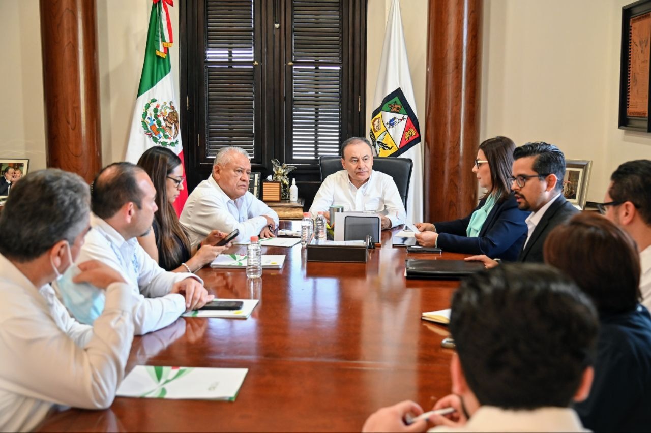 Hermosillo, Sonora; 20 de abril de 2024.- El gobernador Alfonso Durazo Montaño celebró la firma de convenio con el titular del Instituto Mexicano de la Propiedad Industrial (IMPI), José Sánchez Pérez, cuyo propósito es generar actividades en conjunto, relacionadas con la promoción de la propiedad industrial, con énfasis en los grupos menos favorecidos en el país, con un enfoque de economía social y solidaria, así como apoyar a las MiPyME sonorenses.