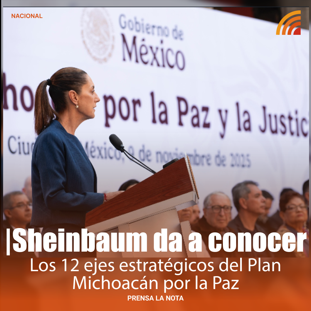 La presidenta de México, Claudia Sheinbaum Pardo (CSP), presentó los 12 ejes del Plan Michoacán por la Paz y la Justicia, una estrategia integral con más de 100 acciones y una inversión de más de 57 mil millones de pesos (mdp).