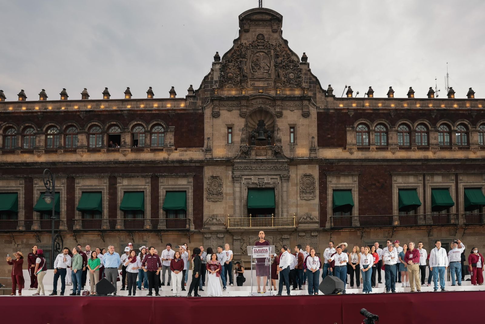 La candidata presidencial estuvo acompañada en el presídium por las y los candidatos a las gubernaturas de Chiapas, Eduardo Ramírez; de Guanajuato, Alma Alcaraz; de Jalisco, Claudia Delgadillo; de Morelos, Margarita González; de Puebla, Alejandro Armenta; de Tabasco, Javier May; de Veracruz, Rocío Nahle; y a la Jefatura de Gobierno de la Ciudad de México, Clara Brugada; así como las y los candidatos de la Cuarta Transformación al Senado de la República.