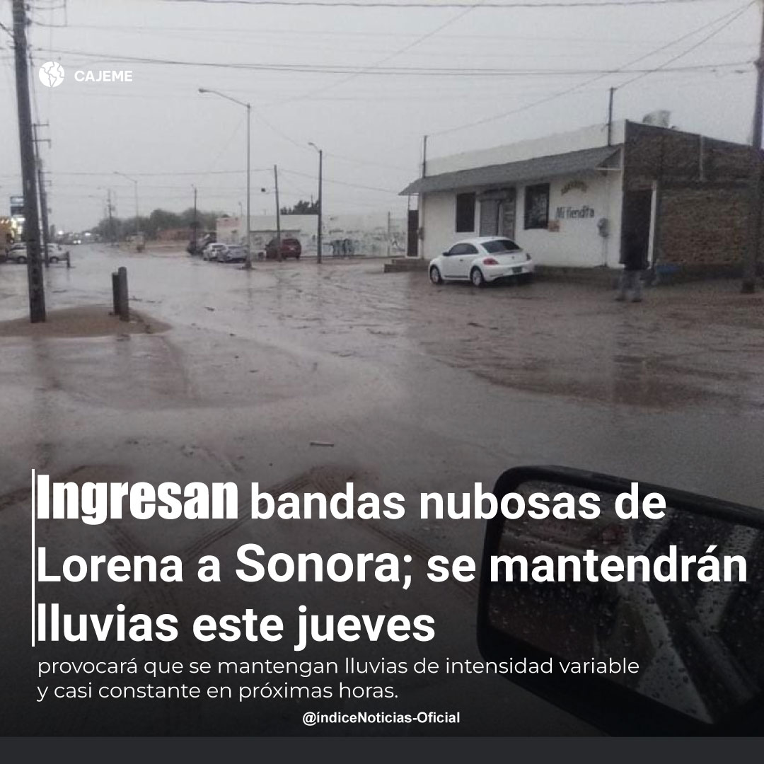Las bandas de nubosidad de mayor densidad de Lorena comienzan a arribar a Sonora, lo cual, provocará que se mantengan lluvias de intensidad variable y casi constante en próximas horas.