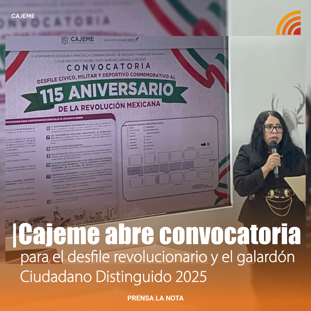 Cristina Valenzuela, subdirectora de Valores Cívicos de Cajeme, dio a conocer que ya se abrieron las convocatorias para participar en el desfile por el 115 aniversario de la Revolución Mexicana y para proponer a personas que puedan recibir el reconocimiento de Ciudadana y Ciudadano Distinguido 2025.