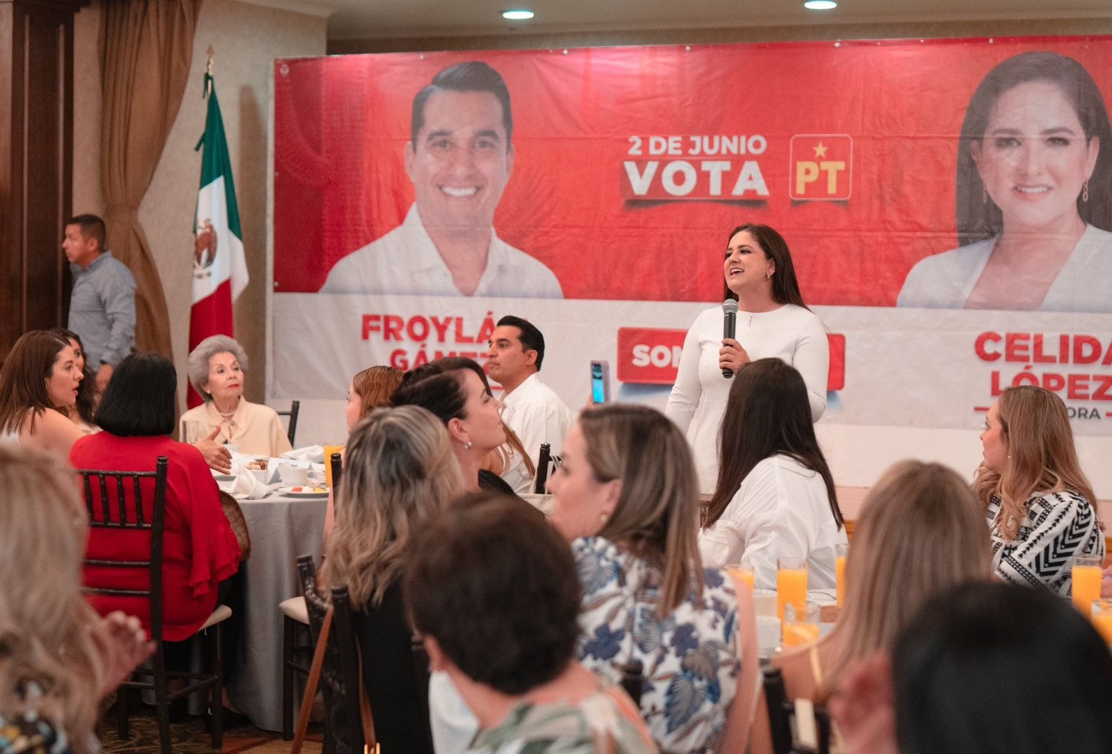 Celida López destacó que faltan solo cinco puntos para lograr el Plan C de la Dra. Claudia Sheinbaum en Sonora y recordó a los presentes que con votar por el PT y su fórmula es apoyar a la 4T y significa impedir que Manlio Fabio Beltrones y Lilly Téllez, candidatos prianistas, lleven la corrupción a la Cámara Alta.