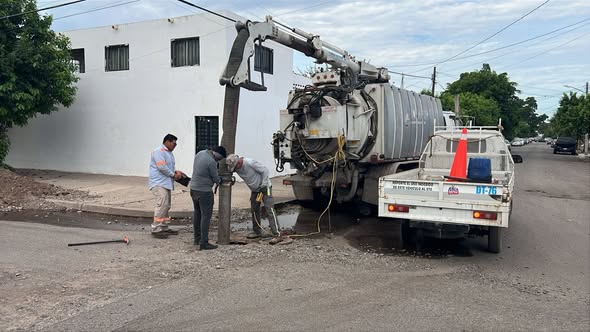 Hoy estamos trabajando en desasolve de drenaje sanitario en calles Hermanos Talamante entre Chihuahua Gonzalez y Coahuila de colonia Campestre