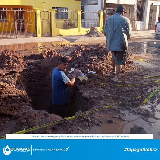 Reparación de toma por calle Vicente Suárez entre Coahuila y Zacatecas en Col. Cortinas.