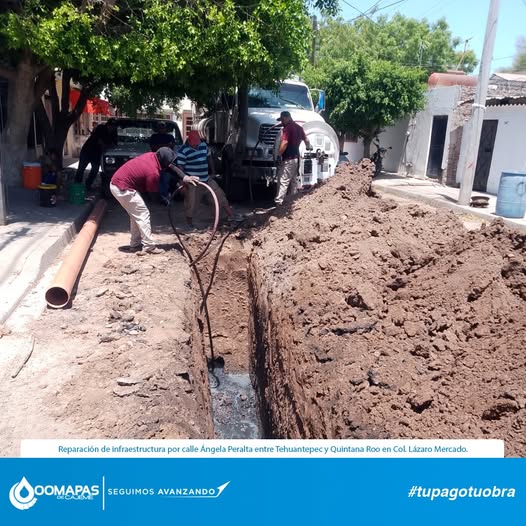 Reparación de infraestructura por calle Ángela Peralta entre Tehuantepec y Quintana Roo en Col. Lázaro Mercado.