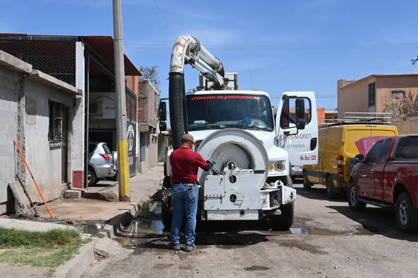 Trabajos de desazolve y varilleo por calle Cd. Victoria y Mexicali en Col. Sostenes Valenzuela.