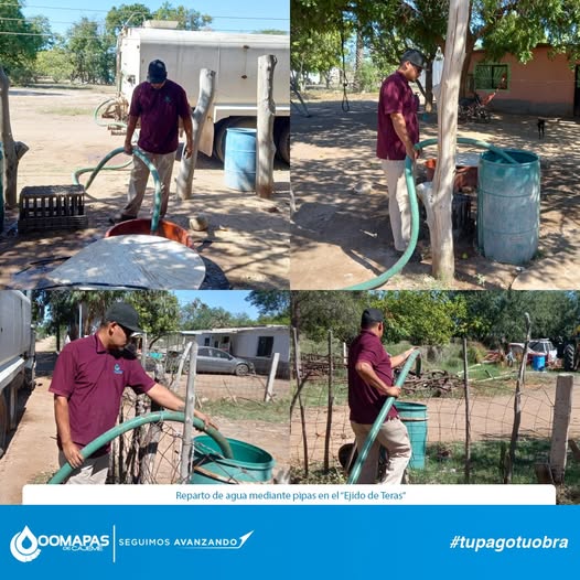 Reparto de agua mediante pipas en el “Ejido de Teras”.