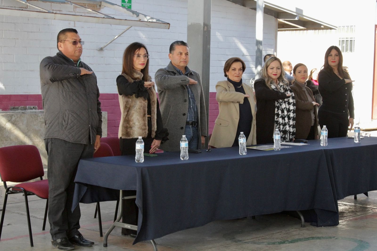 En el marco de la ceremonia de honores a la bandera en la que participaron las escoltas del plantel y de la División de Proximidad de Policía Estatal, las y los pequeños tomaron protesta convirtiéndose en los primeros Promotores de la Paz en el 2024.
