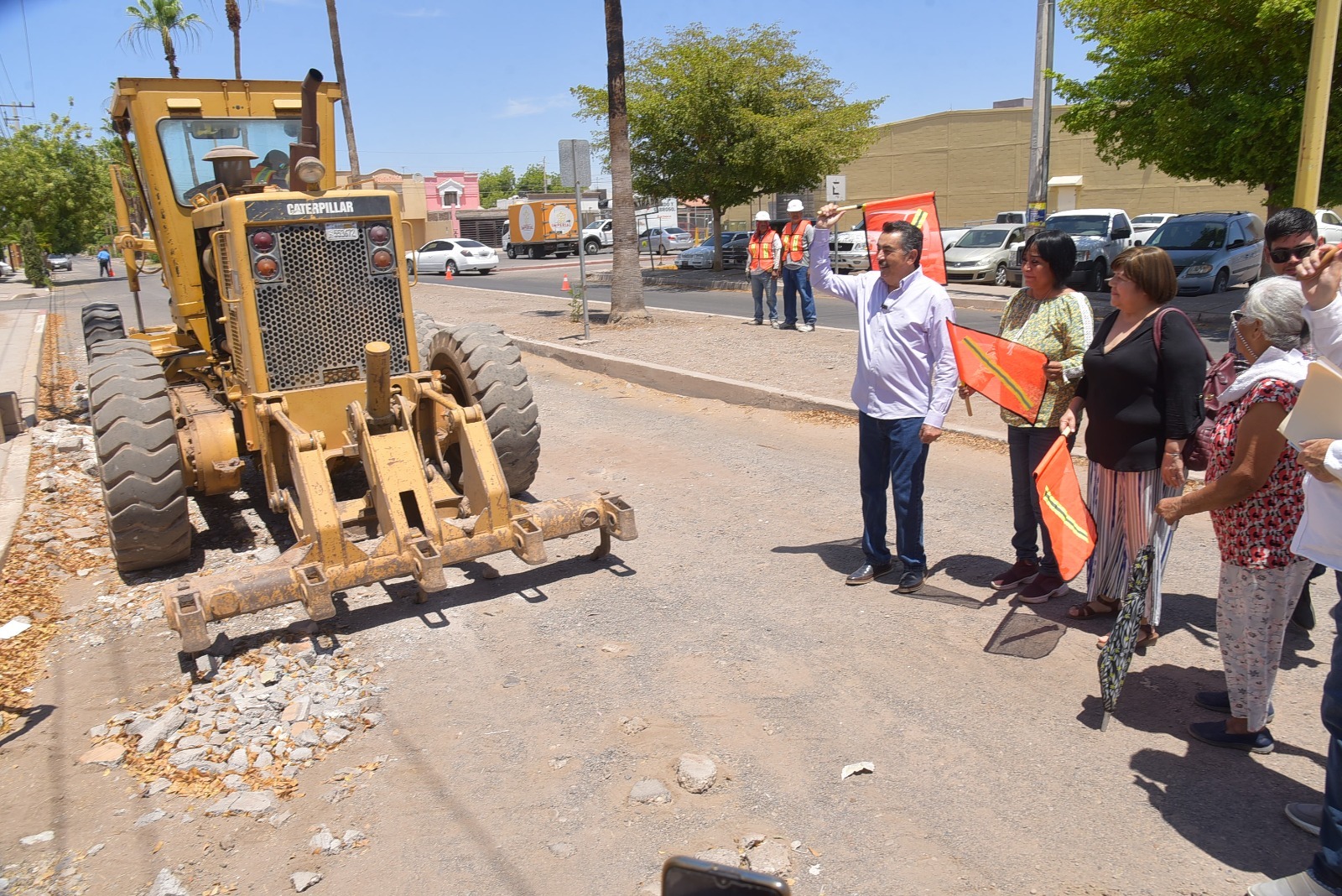 Luego de poner en marcha los trabajos en este sector, el Alcalde se dirigió a la colonia Villas del Rey, donde un grupo de habitantes lo estaban esperando para saludarlo y agradecerle por iniciar la pavimentación de la calle Jesús García entre bulevar Villas del Rey y avenida Oasis, donde se realizarán trabajos de rehabilitación de pavimento a base de bacheos y colocación de carpeta de concreto asfáltico de 5 centímetros, con labores previas de mejoramiento de terracerías y guarniciones.
