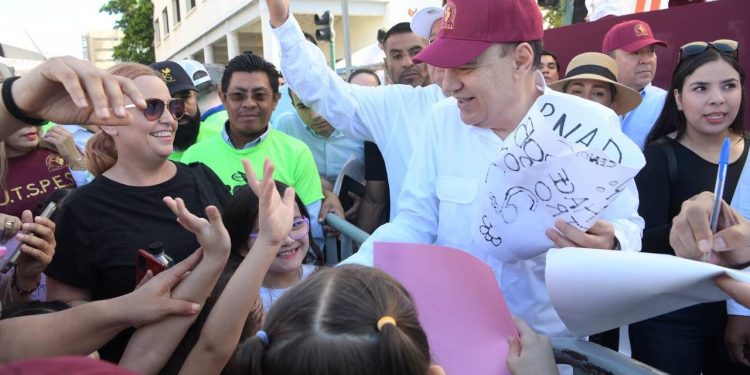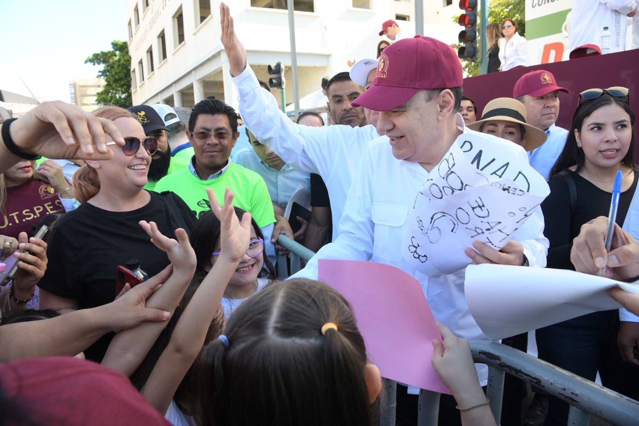 El gobernador Durazo Montaño, ante más de 30 mil trabajadores reiteró el compromiso que tiene con las y los sonorenses para avanzar en la mejora de la condición de las y los trabajadores y de continuar al frente de un gobierno sensible que atienda las demandas en el sentido que las y los trabajadores planteen.