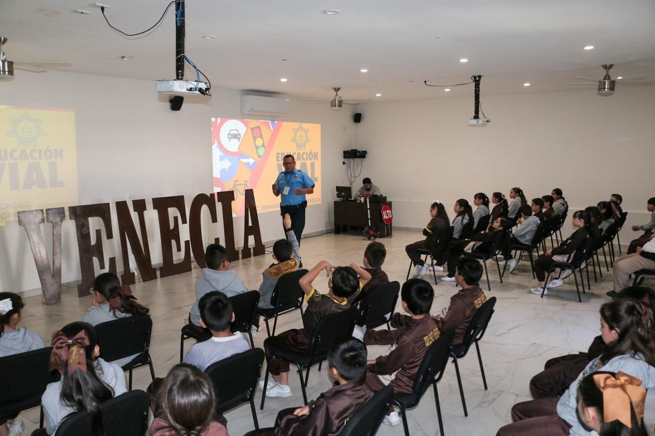 El agente de la Policía Municipal Emmanuel Carrillo, comisionado al departamento de Cultura Vial de Tránsito, dio a conocer que visitaron la escuela primaria Venecia, donde realizaron una plática educativa con niñas y niños de nivel primaria.