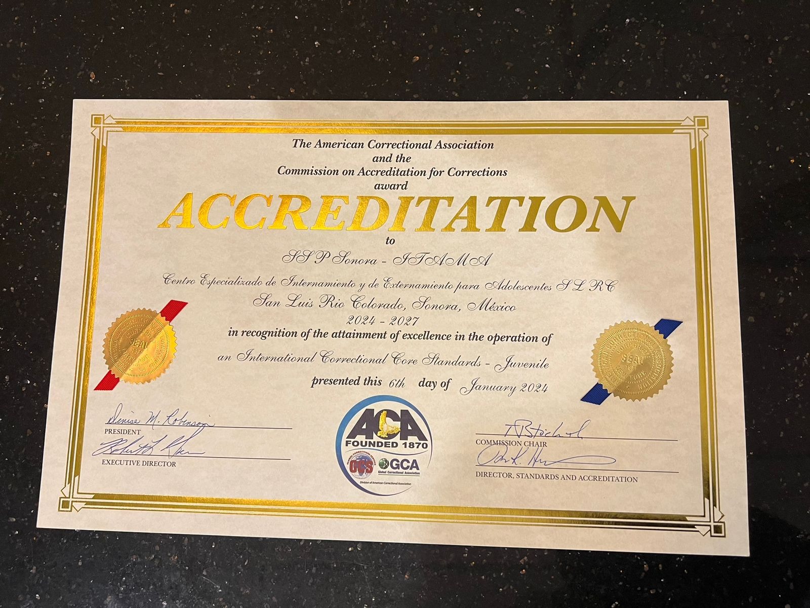 La directora del Instituto de Tratamiento y de Aplicación de Medidas para Adolescentes (Itama) informó que, durante la Conferencia Nacional 2024 que se llevó a cabo en Harbor, Maryland de Estados Unidos de Norteamérica del 4 al 7 de enero del presente año, la comitiva sonorense comparecieron ante los comisionados de ACA quienes revisaron, analizaron y validaron el informe de auditoría y plan de acción, otorgando por unanimidad el máximo galardón que distingue a la institución como óptima para brindar atención especializada.