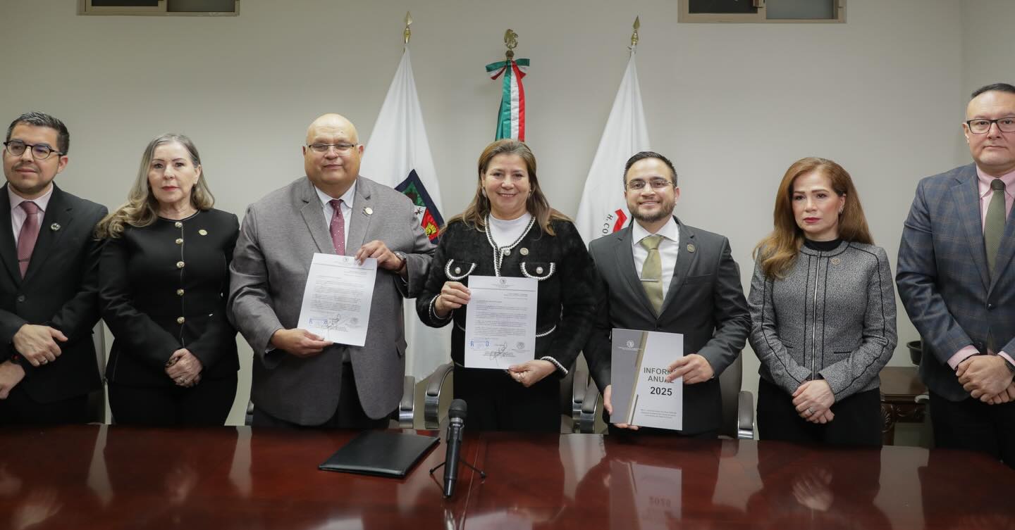La diputada presidenta Vicky Espinoza, acompañada por el diputado René Garcia Rojo y las y los magistrados del Tribunal de Justicia Administrativa del Estado de Sonora, recibió el informe anual de labores de la institución, en cumplimiento a lo dispuesto en la Ley de Justicia Administrativa.oo