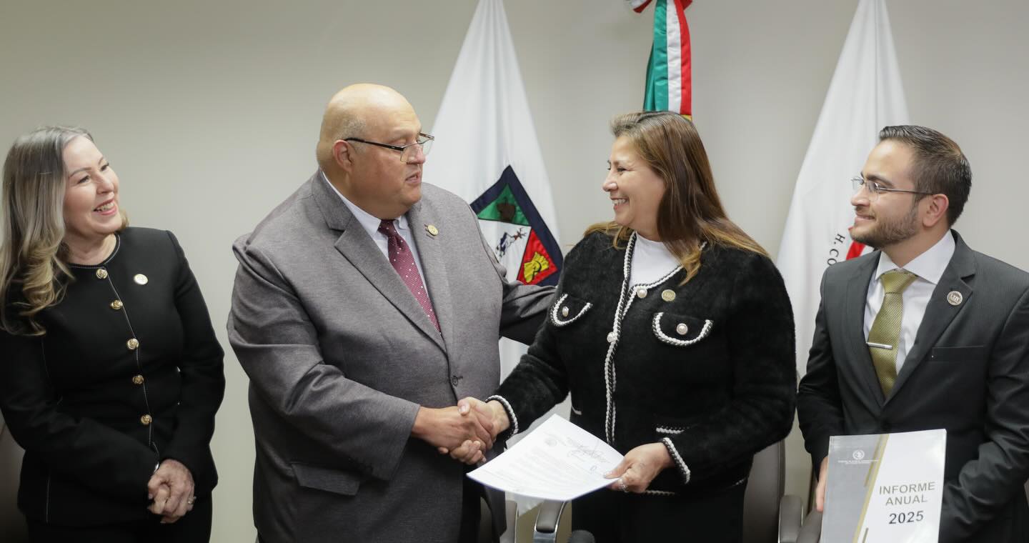 La diputada presidenta Vicky Espinoza, acompañada por el diputado René Garcia Rojo y las y los magistrados del Tribunal de Justicia Administrativa del Estado de Sonora, recibió el informe anual de labores de la institución, en cumplimiento a lo dispuesto en la Ley de Justicia Administrativa.oo