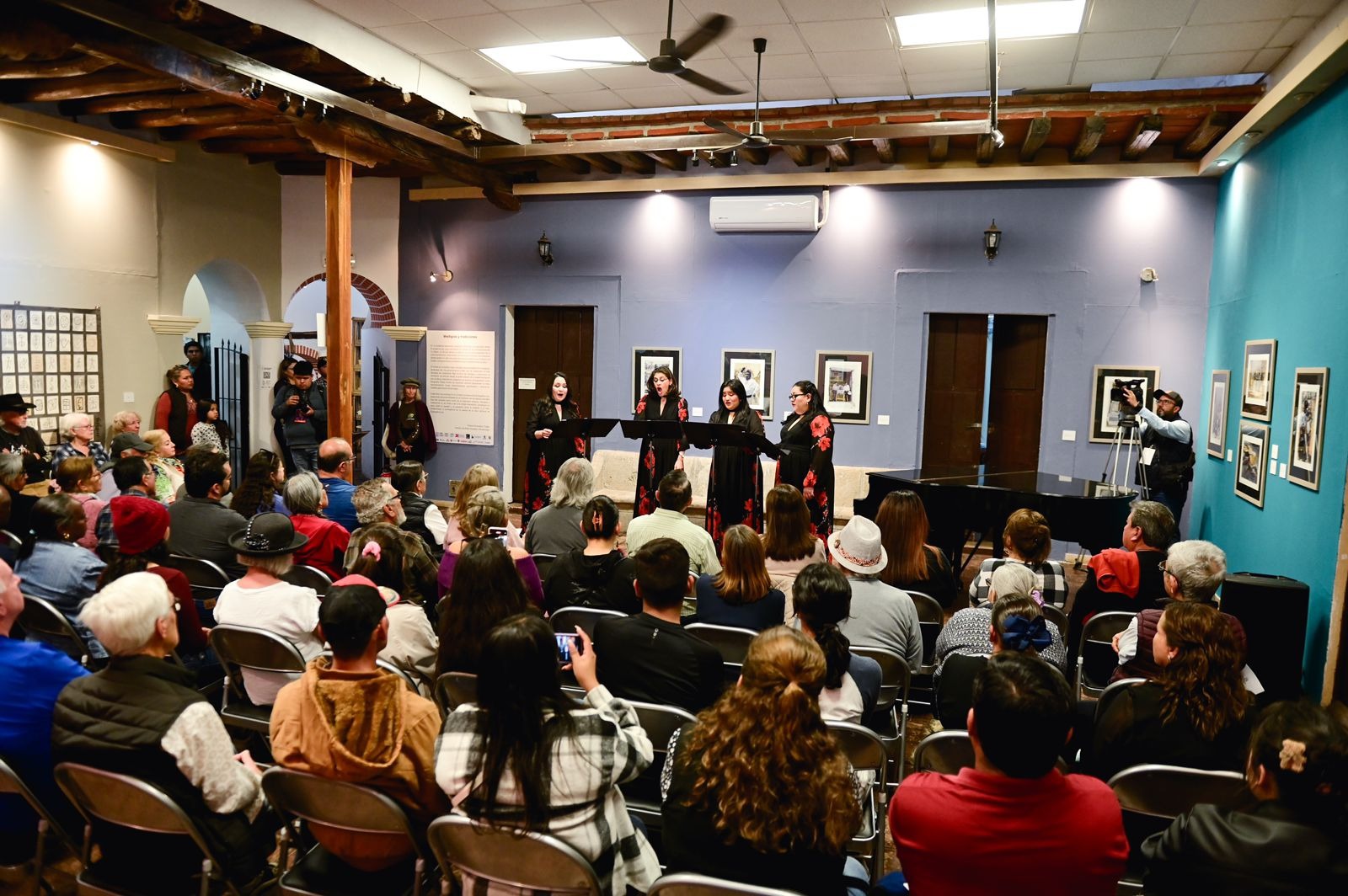 Álamos, Sonora; 24 de enero de 2024.- El escenario del Museo Costumbrista de Sonora lució abarrotado tanto de visitantes nacionales como extranjeros para rendirle tributo a la contribución de las mujeres a la historia de la música, todo esto dentro de las actividades de la trigésima novena edición del Festival Alfonso Ortiz Tirado.